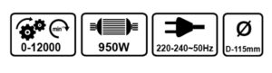 Vue Rapide 139.690TND• The new AG 115 P angle grinder is the most durable in its category: very good cutting and deburring performance thanks to the powerful 950W motor. • Perfect handling thanks to the ergonomic shape and the thin handle and optimal user protection. Characteristics: Power: 950W Disc diameter: 115mm No Load Speed: 12000r/min Spindle Size: M14 Switch Type: Side Spindle Lock: Yes